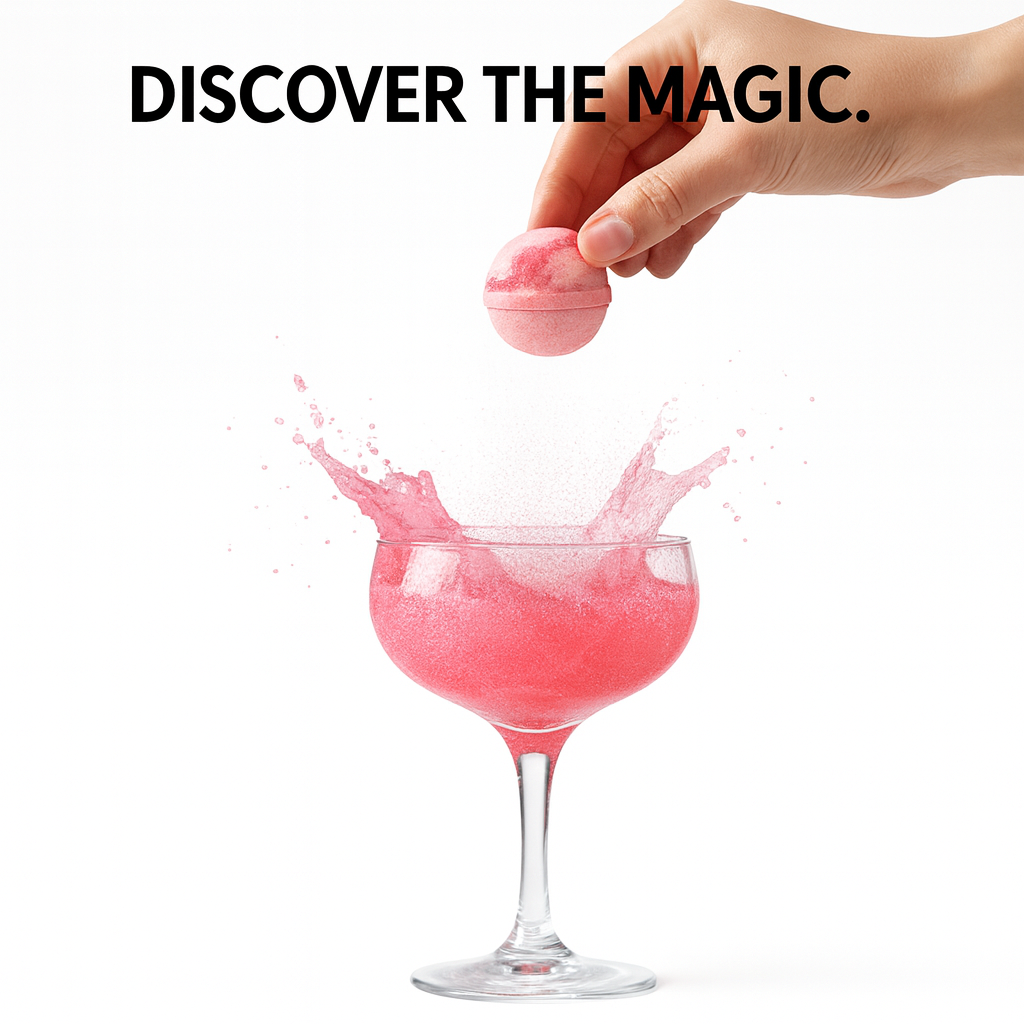 Simply drop it into sparkling water and watch it fizz into a sparkling, ruby-toned drink with a touch of shimmer. Perfect for date nights, brunch moments, or anytime you want a sip that feels charming and unforgettable.